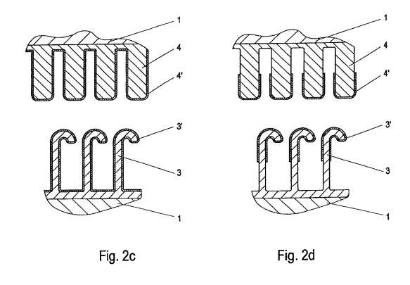 with a specific "velcro" pattern on their upper and lower sides, due to